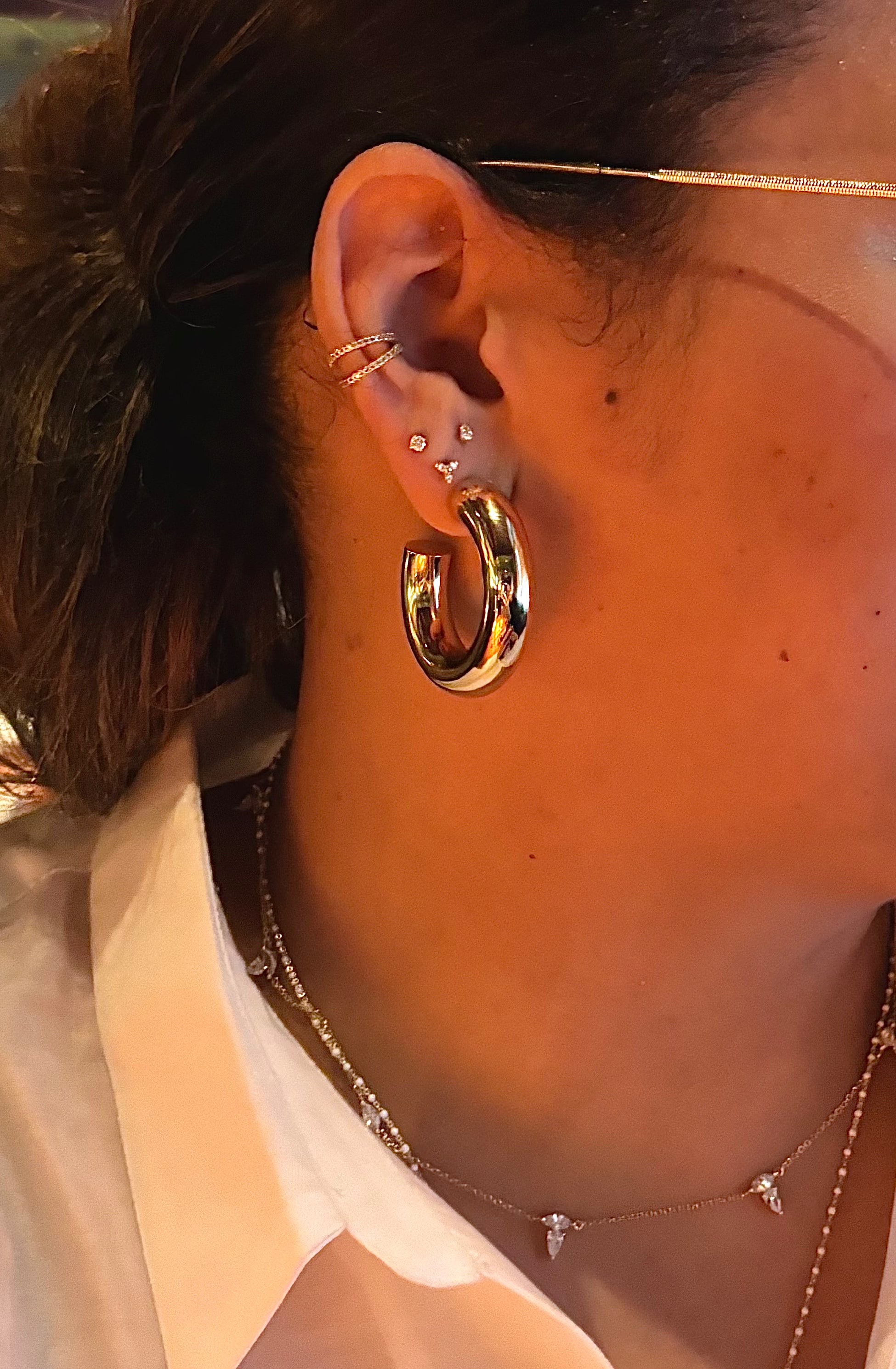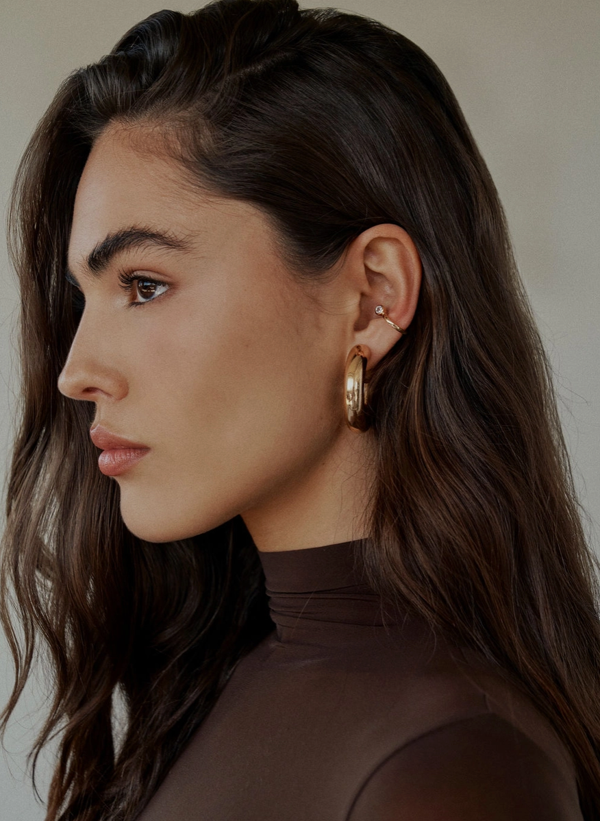 Our Anye Gold Hoops are a moden twist on the classic gold hoop.