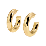 Sleek, bold, and lightweight make them perfect for everyday wear. These medium gold hoop earrings are your new daily go-to for adding polish to any look.