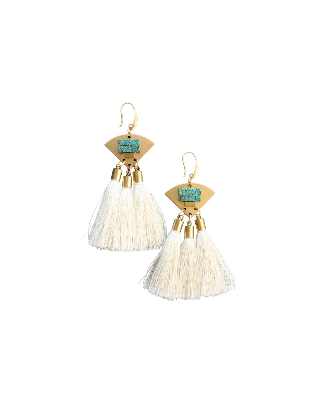 Materials: Turquoise stone, white silk tassels, brass