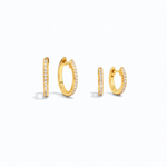 Subtle sparkle, effortless wear. These pavé huggie earrings are designed for everyday elegance, featuring a sleek gold silhouette lined with subtle gems. Lightweight, comfortable, and endlessly versatile, they hug your ear just right—whether worn solo or stacked with your favorites.