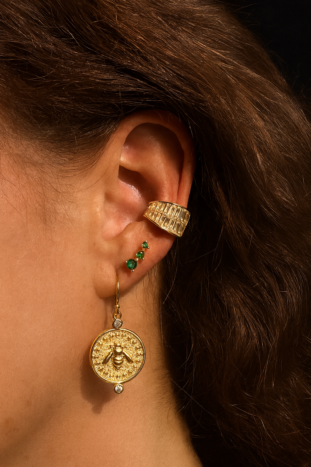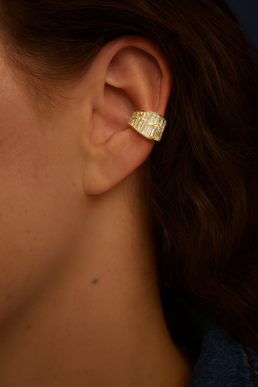 Drenched in sparkle and made to turn heads. The Strata Ear Cuff is all shine, no stress, and no piercing required.