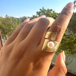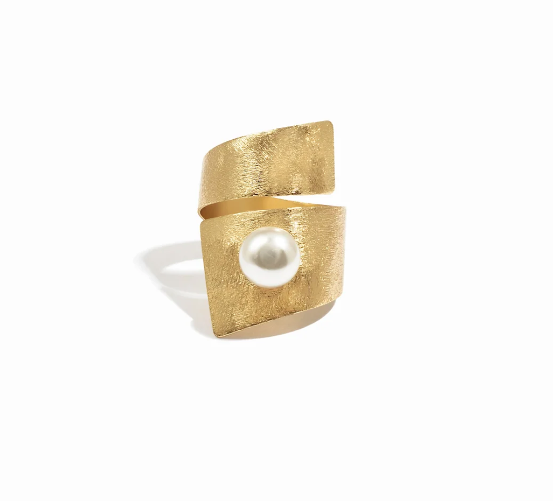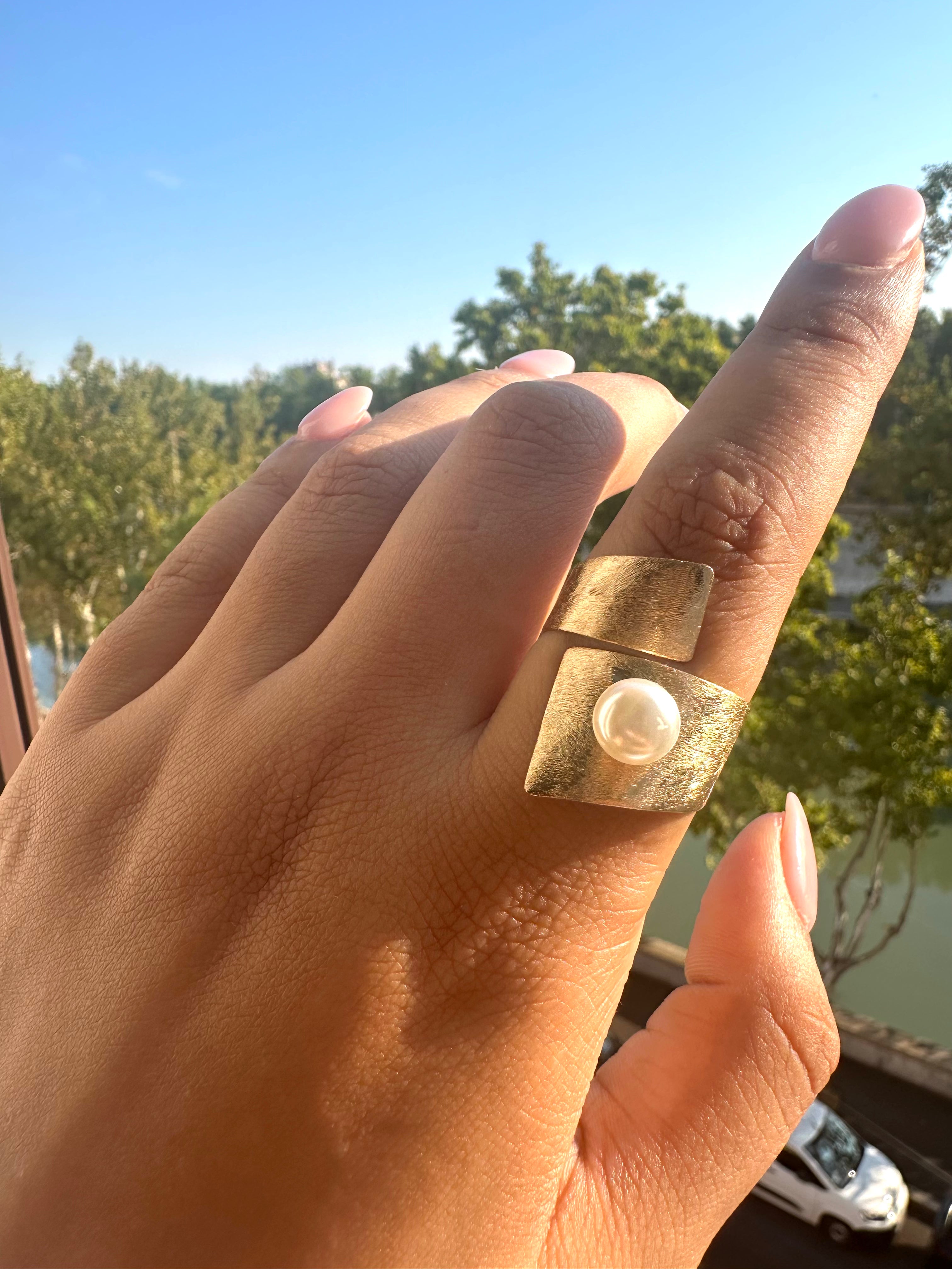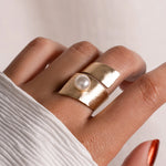 This adjustable ring features a bold, luminous pearl nestled in a sculptural setting—organic curves that feel like they were carved by the tide. Understated yet unforgettable, she wears beautifully on her own or stacked asymmetrically. Designed to evolve with you, no sizing stress, just effortless elegance.