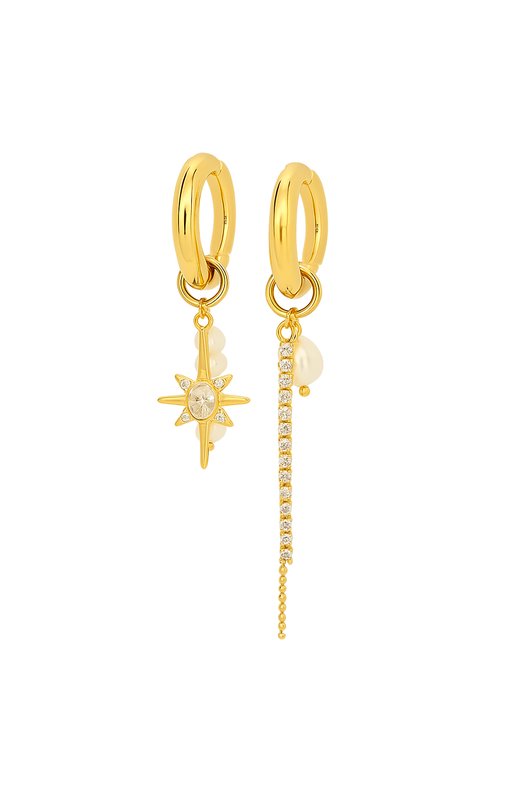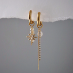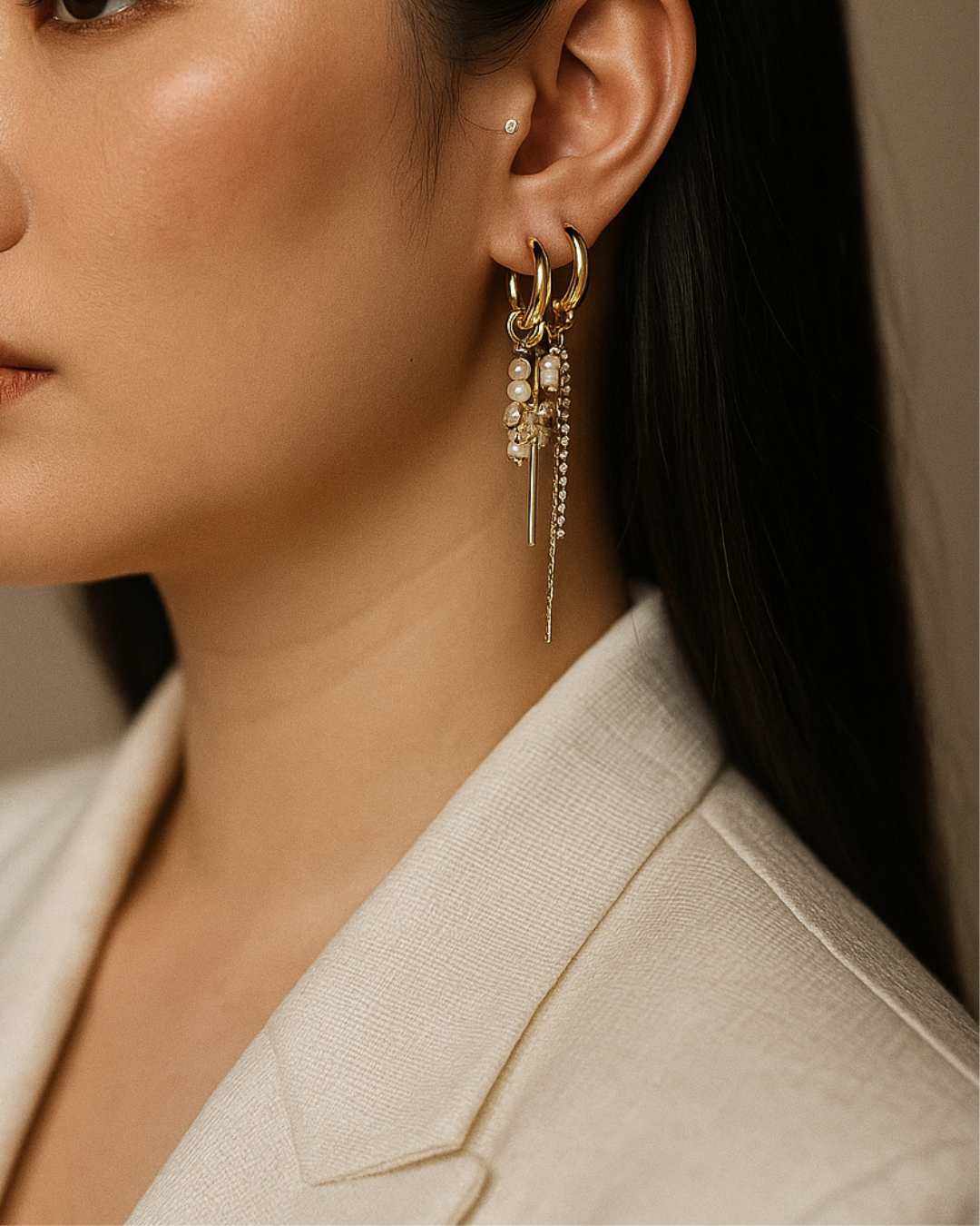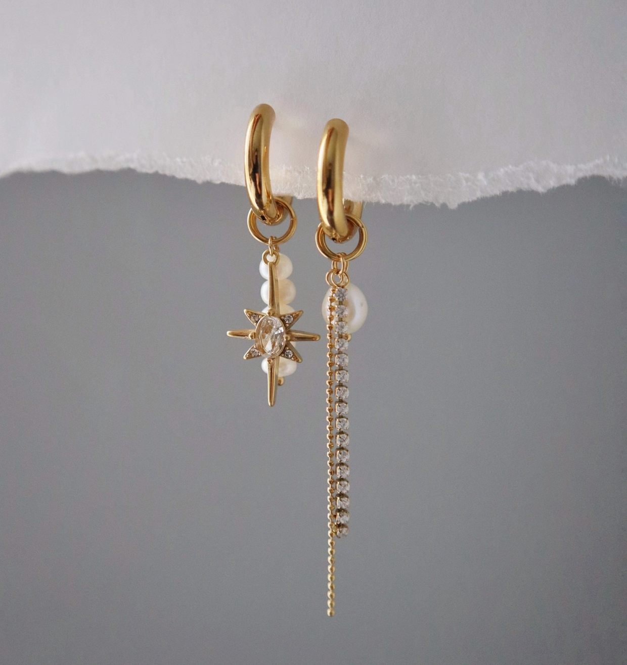 The Tati Charm Hoop Earring Set features dainty dangle charms that catch the light with every move. Their asymmetrical design adds a chic, unexpected twist, perfect for those who love a look that’s effortlessly sophisticated yet playfully unique.